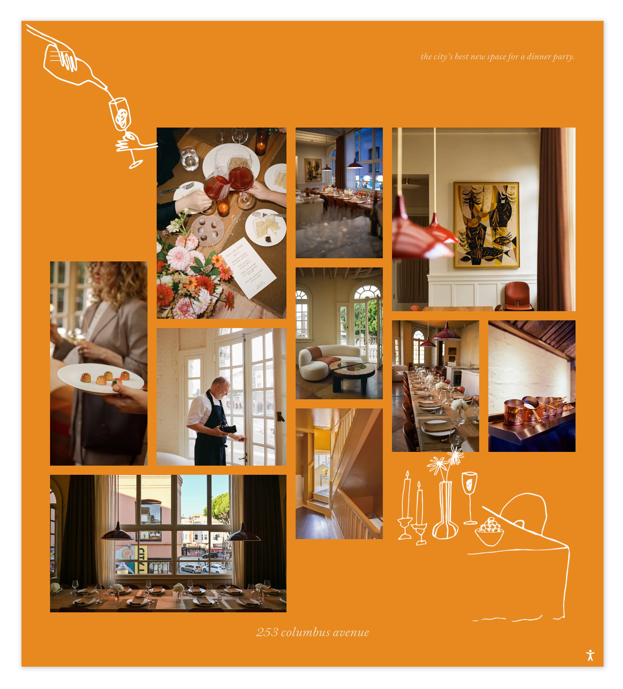 Officina is a private dining and events space located in San Francisco’s North Beach, perched above Vesuvio Café and across from the historic City Lights Bookstore. Conceived as an intimate, loft-like environment for dinner parties and gatherings, the space is defined by its relationship to light, place, and the surrounding neighborhood.